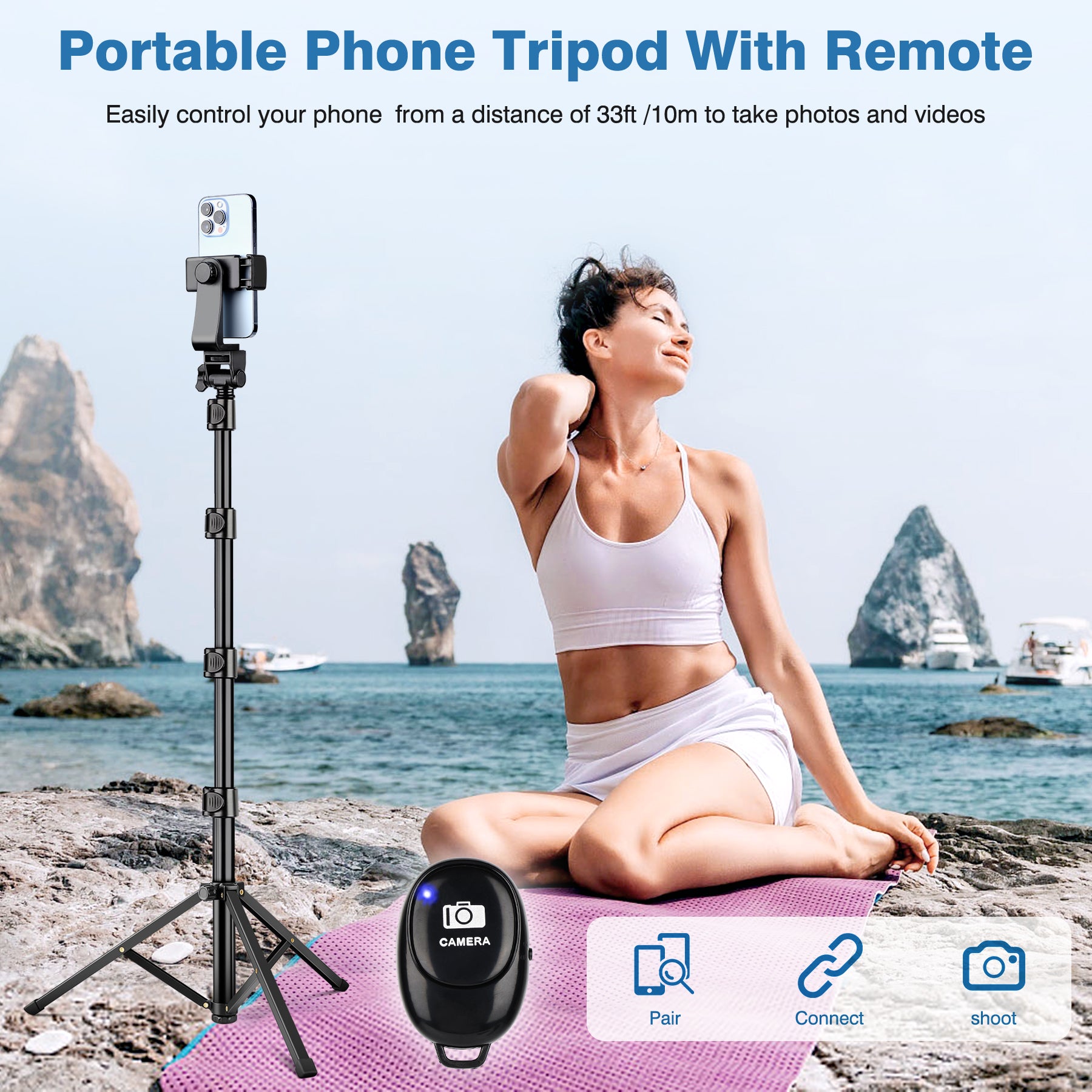 70" Phone Tripod with Remote & Holder, Portable Cell Phone Stand, Selfie Stick for Video Recording, Compatible with iPhone 14/13 Pro Max/Android/Camera(US))