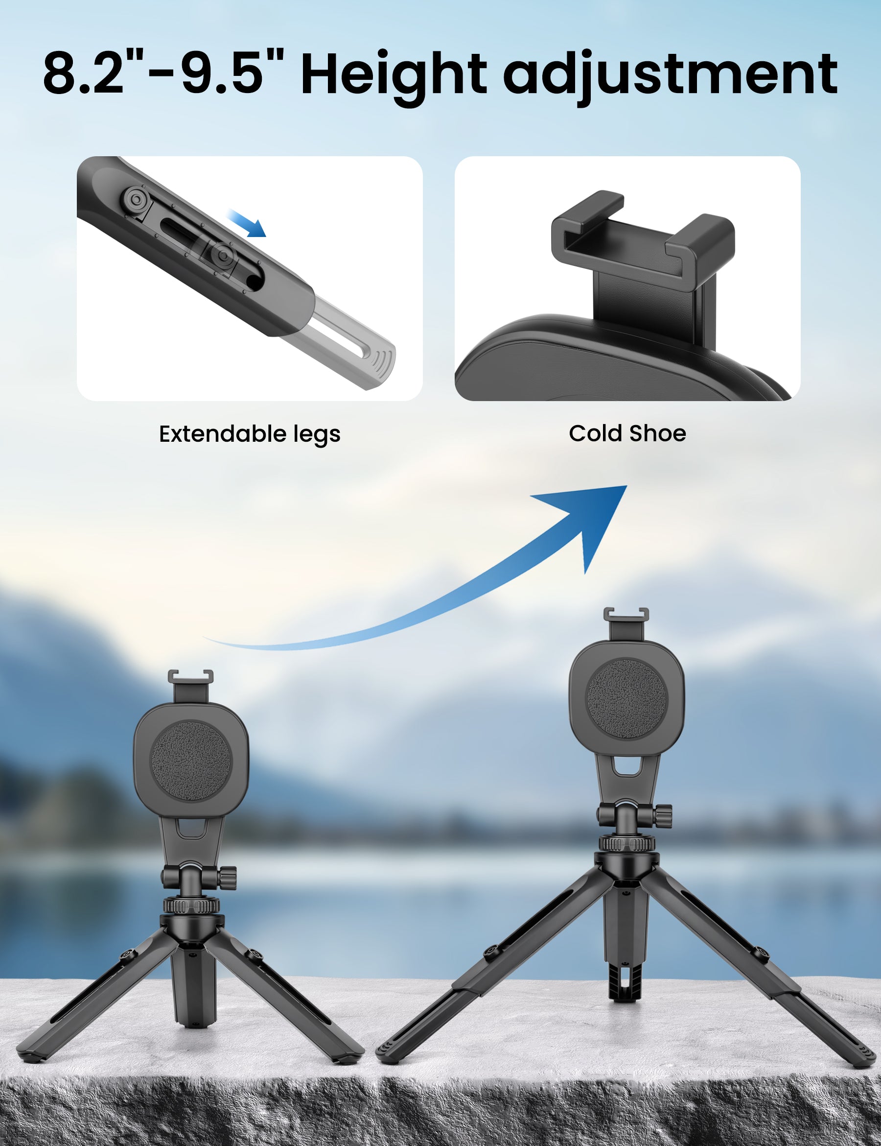 【Portable and Multi-Use】Thanks to the lightweight design, portable travel tripod weighs only 0.3lb, making it highly portable. Functions as a desktop stand for hands-free viewing or as a practical shooting assistant outdoors—ready to perform in various scenarios