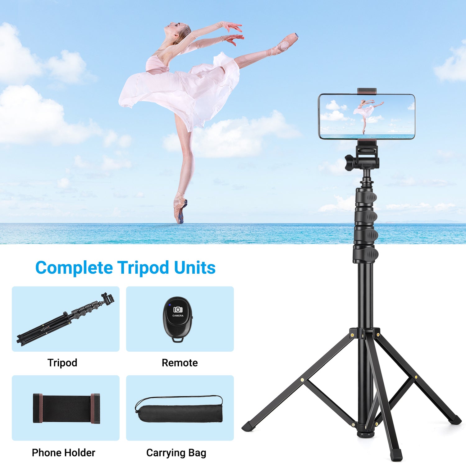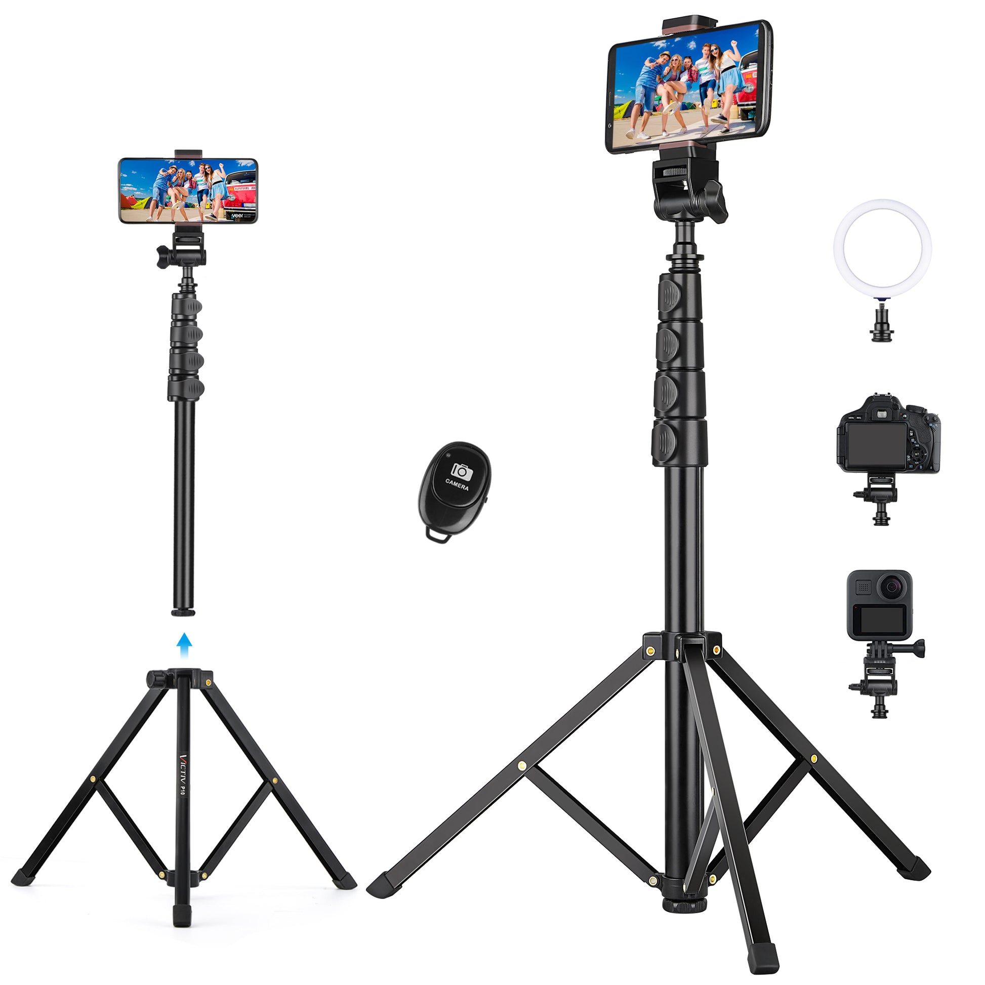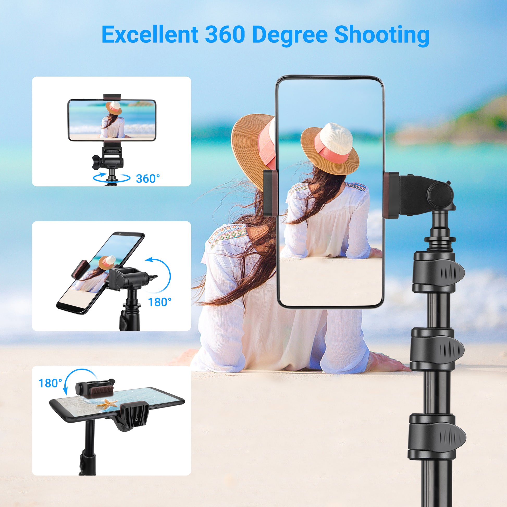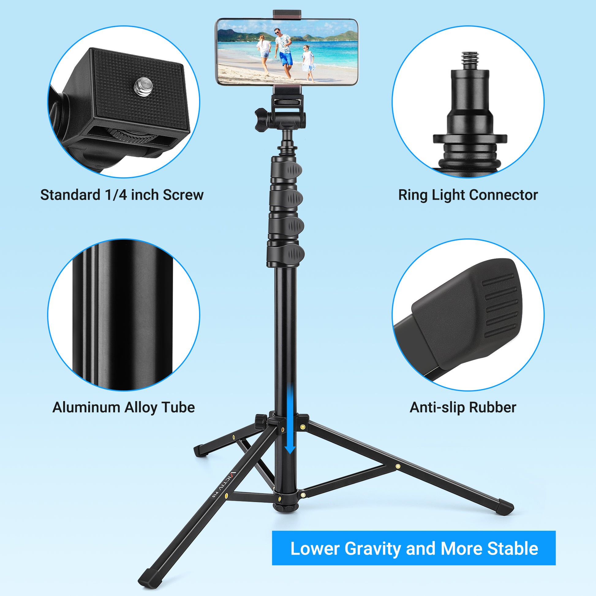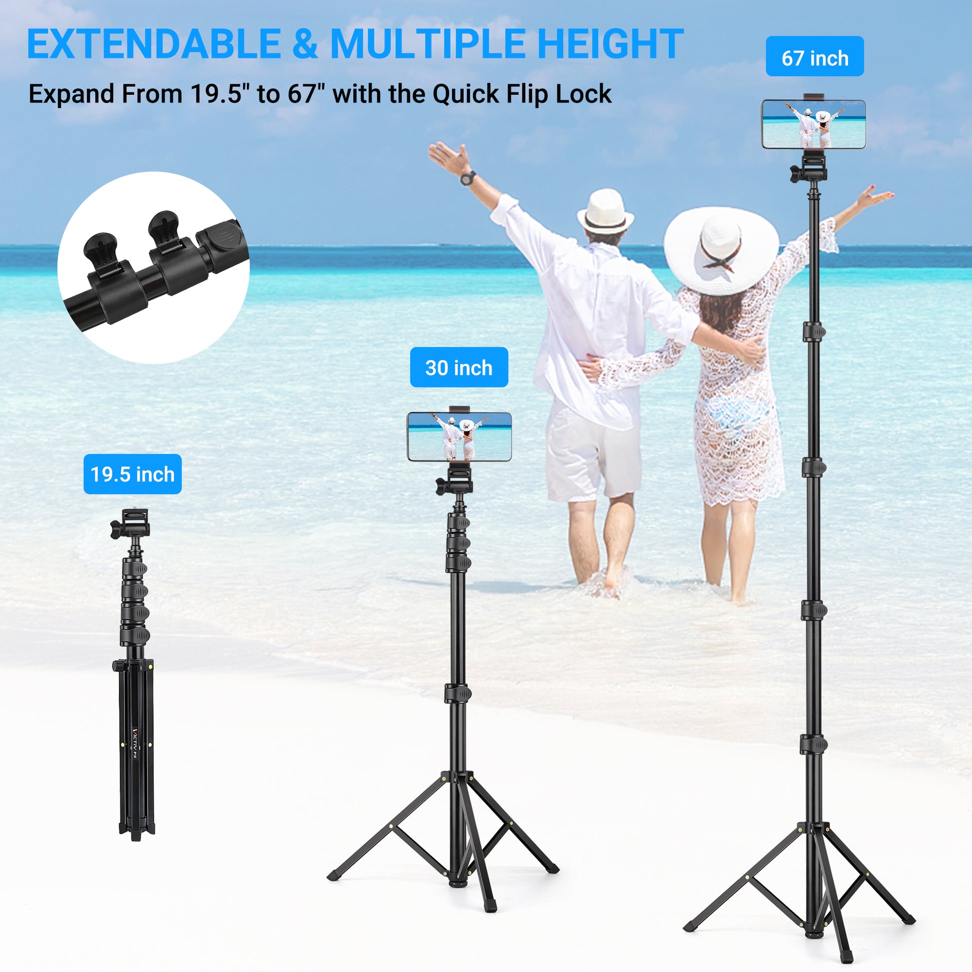 【Excellent Length Performance】 The Phone Tripod Stand Is Height-Adjustable And Extends From 19.5” To 67”. It Gives You a Super Wide Range To Capture More Friends And Wider Landscapes Into The Picture.
