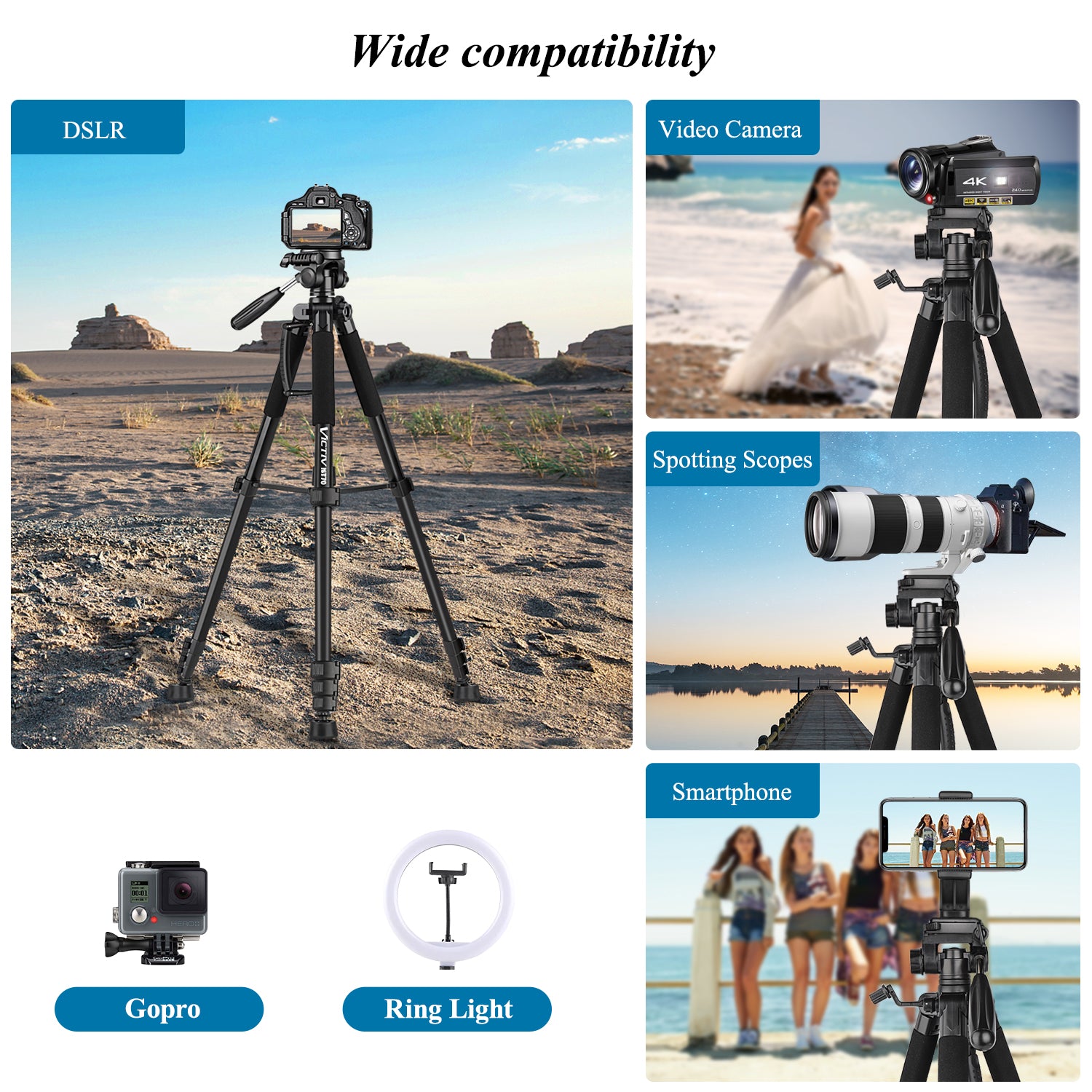 VICTIV 74” Camera Tripod, Tripod for Camera and Phone, Aluminum Professional Tripod Stand for Canon Nikon with Carry Bag and Phone Holder, Compatible with DSLR, iPhone, Spotting Scopes, Max Load 9.5Lb(US)