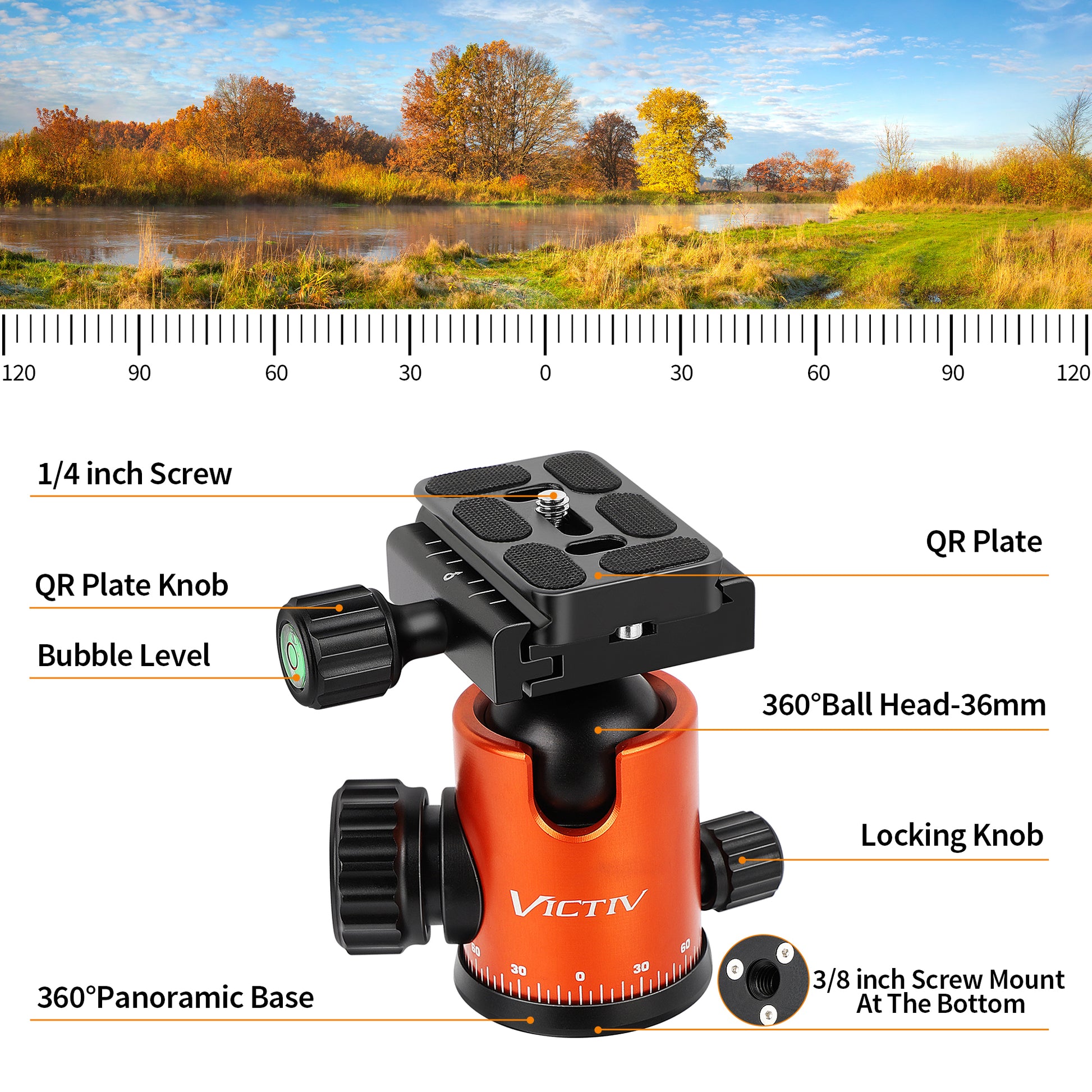 Victiv 80" Camera Tripod, Aluminum Heavy Duty Tripod Stand with 360° Ball Head, Camera Tripods & Monopods with Carry Bag, Suitable for Canon Nikon Binoculars Spotting Scope Telescope(US